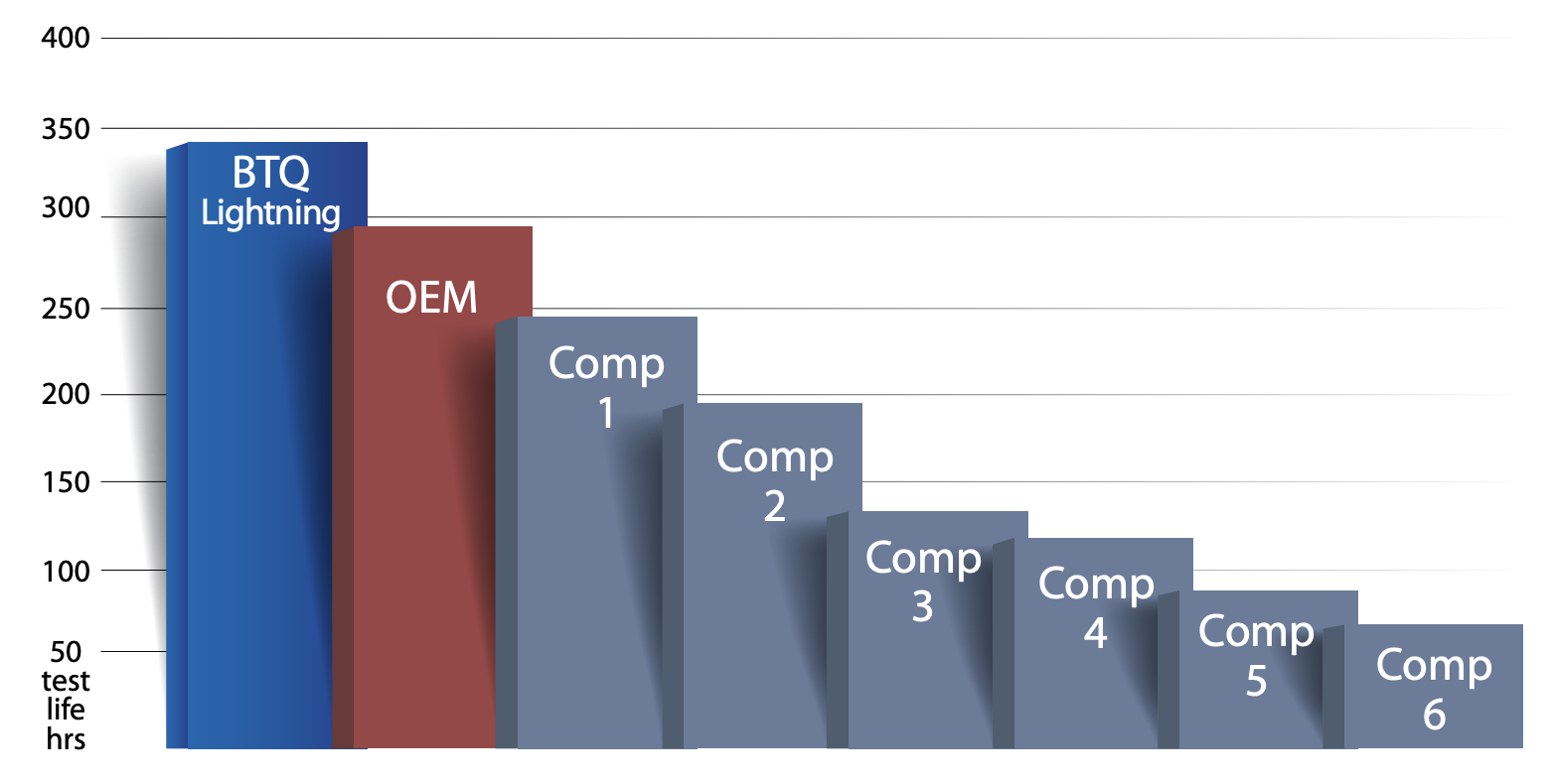 In rigorous 2017 lab testing, Bestorq Lightning® V-Belts outperformed OEM and competitive belts by a significant margin.